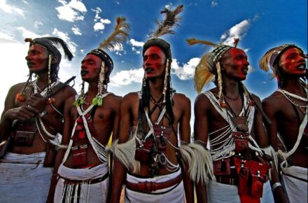 Il Gerewol, noto anche come Festival Bororo, è una vibrante celebrazione annuale organizzata dai Wodaabe, un popolo semi-nomade appartenente all'etnia Fulani. Si svolge generalmente tra settembre e ottobre, in corrispondenza del termine della stagione delle piogge, quando i mandriani si riuniscono prima di migrare verso sud in cerca di pascoli per la stagione secca. Musica e danza: Il Gerewol è un'esplosione di musica e danza, con i partecipanti che si adornano con abiti elaborati e gioielli sgargianti. La danza Yaake, fulcro del festival, vede gli uomini esibirsi in virtuosi movimenti e acrobazie per corteggiare le donne.