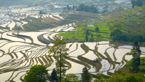 Un’intera giornata dedicata a questo Patrimonio UNESCO, capolavoro di ingegneria agricola del popolo Hani, le Terrazze di Riso di Yuanyang. L’alba a Duoyishu vi regalerà riflessi di luce indimenticabili, seguita dalla visita al villaggio tradizionale di Azheke. Dopo un piacevole soft trekking tra le case a fungo di Qingkou, concluderete con lo spettacolare tramonto a Laohuzui, la Bocca della Tigre, dove le pendenze vertiginose delle risaie creano disegni ipnotici. Pernottamento presso l’hotel Oness Resort Yuanyang Terrace o similare. Mezza pensione con pranzo.